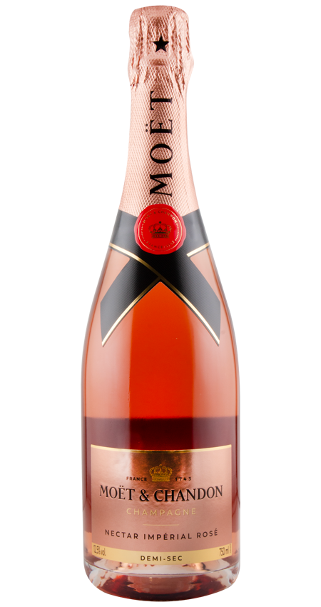 Moët & Chandon Nectar Impérial Rosé delicious demi-sec Champagne, known for its vibrant pink color and deep, fruit-forward character. Crafted from a carefully selected blend of Pinot Noir, Pinot Meunier, and Chardonnay, this rosé Champagne offers a luxurious balance of intensity, sweetness, and elegance.