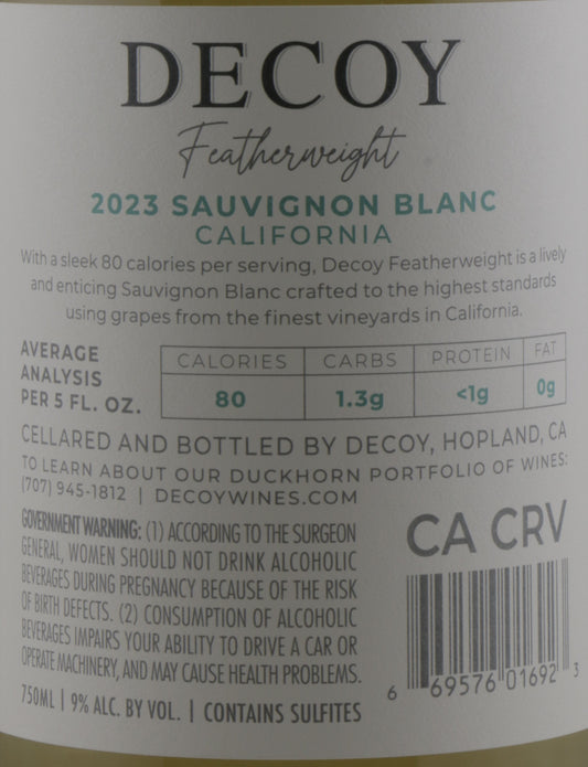 Decoy Featherweight Sauvignon Blanc 2023- Low Calorie