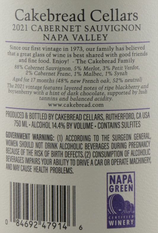 Cakebread Cellars Napa Valley Cabernet Sauvignon 2021 – Premium Napa Cabernet