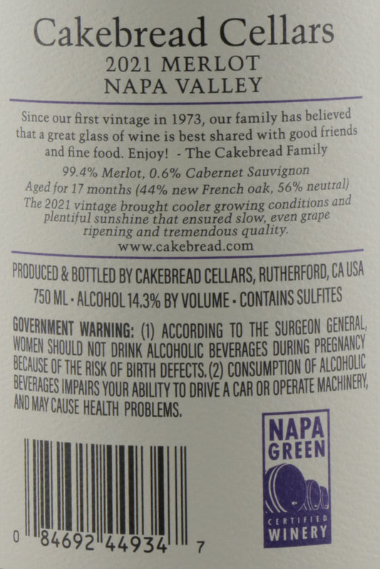 Cakebread Cellars Merlot 2021 – Napa Valley Elegance in a Glass