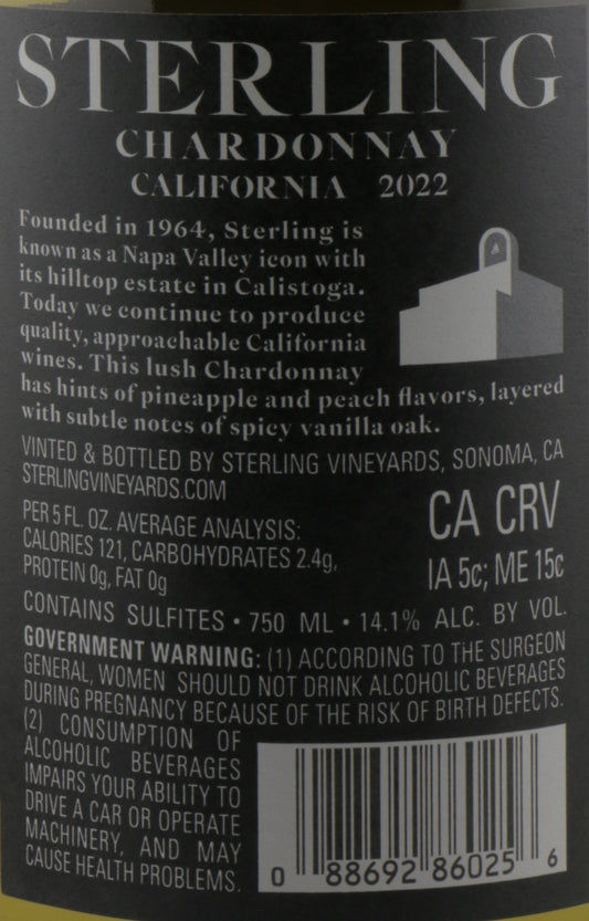 Sterling Vineyards Chardonnay 2022 – California Classic White Wine